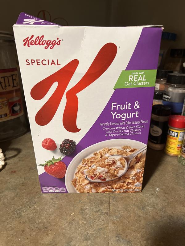 Kellogg's® Special K® Fruit & Yogurt Cereal Special K® Fruit & Yogurt Cereal has crunchy rice and wheat flakes with clusters of oats, fruit and yogurt, for a healthy and delicious way to start your day. Nutrition Facts and Ingredients Select pack size: 19.1oz 12.5oz 13oz