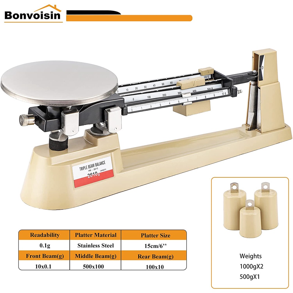 Triple beam balance labeled